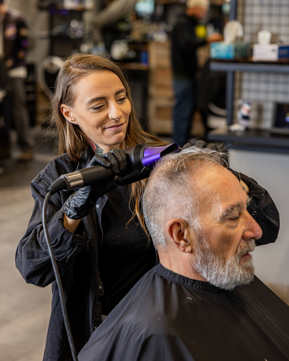 Whether you're looking for a classic, modern, or personalized look, our barbers know how to showcase your unique style. Each cut is preceded by a hair wash for impeccable results, and performed with care and precision to meet your exact expectations.